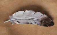 Feder: Angefertigt wird mit Punzier- und Schnitttechniken eine realistisch wirkende "Feder" aus Leder. Diese wird vom Lederhintergrund mit einem Skalpell "angehoben, so dass ein